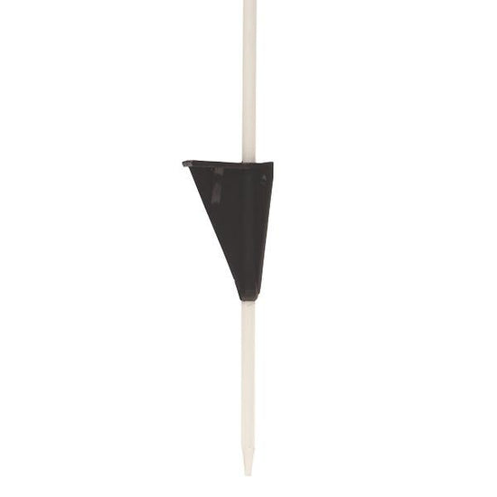 - White fiberglass shaft and small foot spike for easy ground mounting.