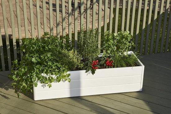 Our largest size Terrace Garden Bed is great for the urban gardener or for those looking to garden in smaller spaces. The compact size at 44.5” length x 16.5” width allows this garden bed to be placed on a patio, deck, balcony, or in the yard. Available in White or Slate color with a woodgrain panel texture, the Terrace Garden Bed is a timeless design that adds to the appearance of any outdoor area. A custom fit spunbond liner is included, which allows excess moisture to pass through it, while retaining the soil inside. No Tools are Required with our innovative quick-connect assembly system that makes set-up or take-down quick and easy! Constructed out of durable polymer material and with double walled panels, the garden bed is maintenance free, UV and cold resistant and able to be left outside in all seasons. It will not rot or rust and is easy to clean. The high wall design at 11.5” is ergonomically friendly and provides more growing options due to greater soil depth. Get ready for your plants, flowers and vegetables to thrive!